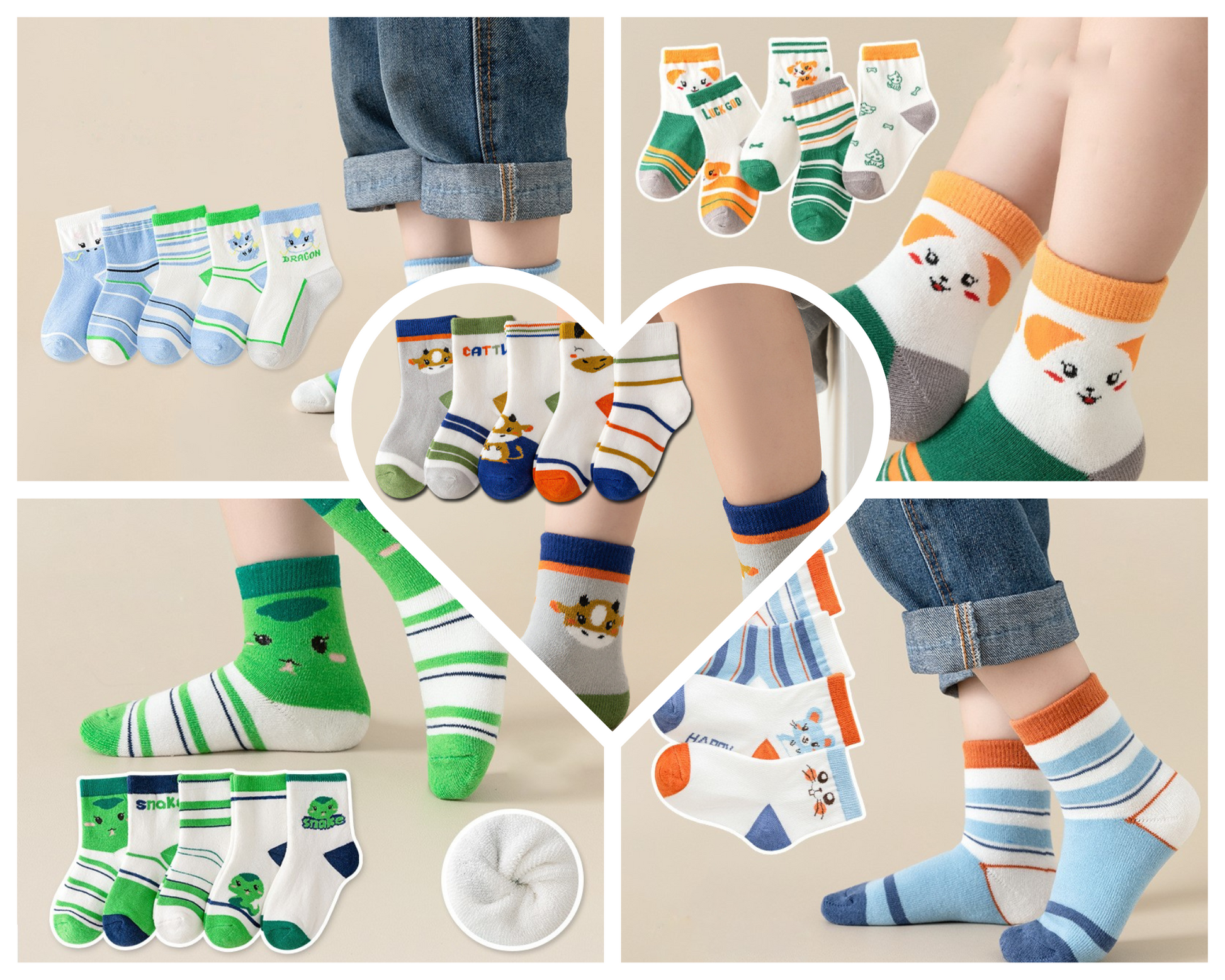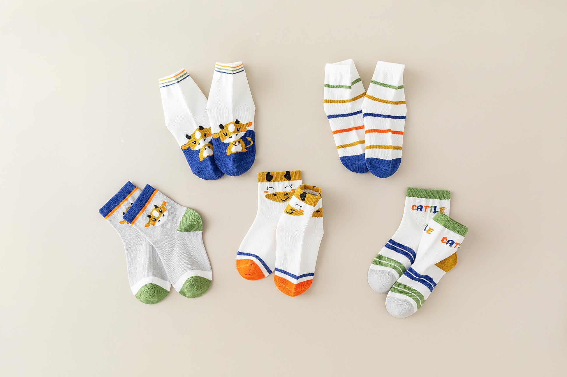 These high-quality polyester socks feature five pairs in one set, each adorned with charming zodiac-themed cartoon animals. Perfectly designed for boys and girls aged 8 months to 12 years, they combine comfort with playful style. Durable and soft, these socks keep little feet cozy while adding a fun, personalized touch to any outfit.