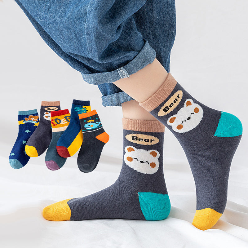Keep your child's feet cozy and stylish with this 5-in-1 set of high-quality socks featuring adorable animal prints.