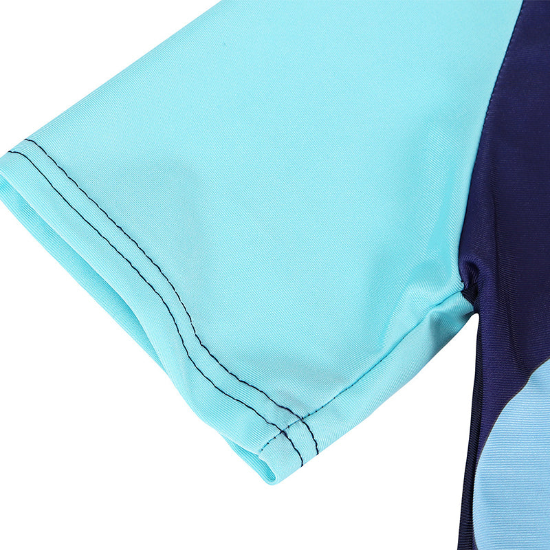 Featuring a fun cartoon design, it combines playful style with effective sun protection to safeguard young skin during outdoor water activities.