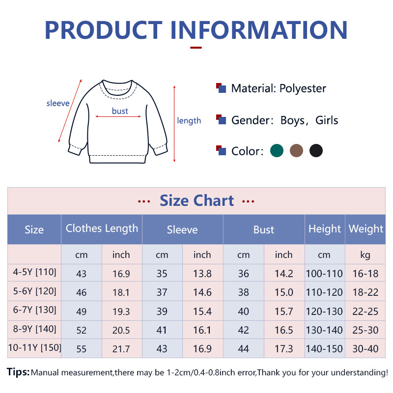 Kids Sweatshirts Long Sleeve Outerwear Warm Korean Casual Style Pullover Tops for Boy Girl 4-11Y