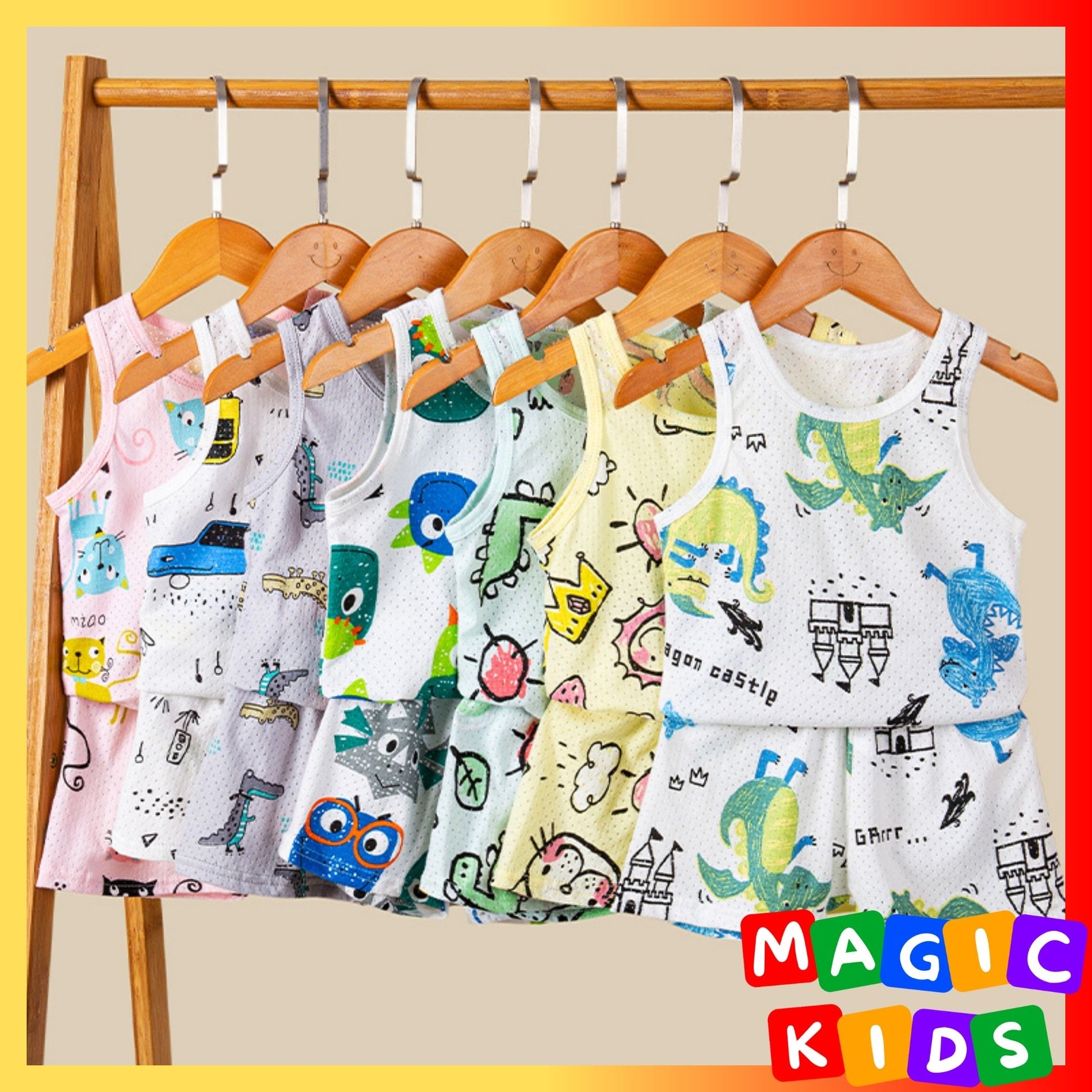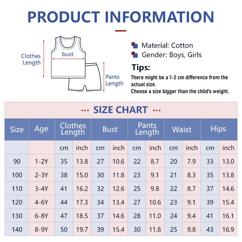 Kids Terno Summer Breathable Sleeveless Clothing Cotton Nightwear Vest+Pants for Boys Girls 1-9Y